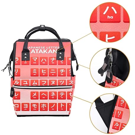 Sản phẩm Japanese Letters Hiragana Alphabet Red Baby Diaper Bag Changing Bag Nappy Backpack Large Capacity Travel Bag Rucksack for Mom & Dad đang được bán với giá ưu đãi là $61.1272 tại nước Anh.