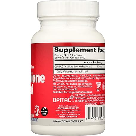 Thông tin sản phẩm Jarrow Formulas, Glutathione Reduced, 500 mg, 60 Veggie Caps