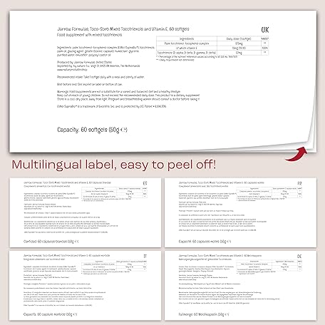 Thông tin sản phẩm Jarrow Formulas Toco-Sorb, Mixed Tocotrienols & Vitamin E, 60 Softgels, Gluten Free, SOYA Free, Non-GMO