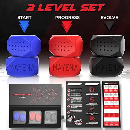Thương hiệu Mayena Sports là cái tên nổi tiếng được rất nhiều khách hàng trên thế giới chọn lựa. Với kiểu dáng đẹp mắt, sang trọng, sản phẩm Jawline Exerciser for Men & Women - 3 Resistance Levels (6pcs) Silicone Jaw Exerciser Tablets for Beginner, Intermediate & Advance Users - Powerful Jaw Workout & Face Exerciser– Slims & Tones the Face là sự lựa chọn hoàn hảo nếu bạn đang tìm mua một món cho riêng mình.