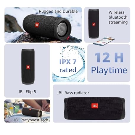 Thông tin sản phẩm JBL Flip 5 Portable Bluetooth Speaker with Rechargeable Battery, waterproof, PartyBoost compatible, midnight black
