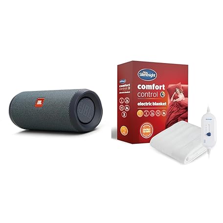Thông tin sản phẩm JBL Flip Essential 2 Portable Bluetooth Speaker with Rechargeable Battery, IPX7 Waterproof, 10h Battery Life, Black & Silentnight Comfort Control Washable Electric Blanket - 3 Heat Settings - Double