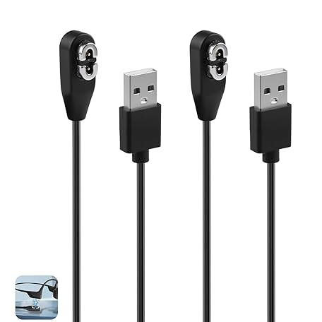 JCSJK Magnetic Charger Cable Compatible with AfterShokz Aeropex, USB A Charging Cord for As800 S803 Opencomm Openrun Pro S810 Mini, Bone Conduction Headphones Wire(2Pcs, 1m)