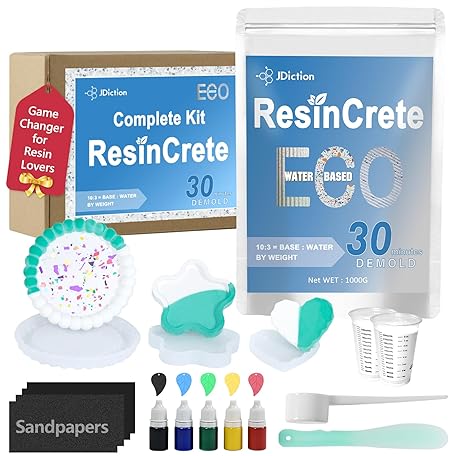 Sản phẩm JDiction ResinCrete Kit, Complete Kit Easy for Beginners, Fast Curing, One Hour Demold, Includes Water-Based Eco-Friendly Powder, Molds, Paints & Brushes (1000g Classic Kit) đang được bán với giá ưu đãi là $43.927 tại nước Anh.