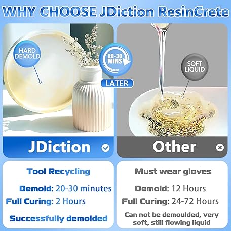 Thông tin sản phẩm JDiction ResinCrete Kit, Complete Kit Easy for Beginners, Fast Curing, One Hour Demold, Includes Water-Based Eco-Friendly Powder, Molds, Paints & Brushes (1000g Classic Kit)