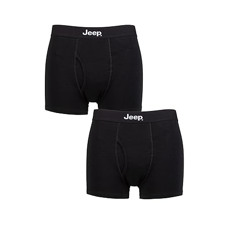 Jeep Men's Cotton Plain Fitted Key Hole Trunk Boxer Shorts - Black/Black S
