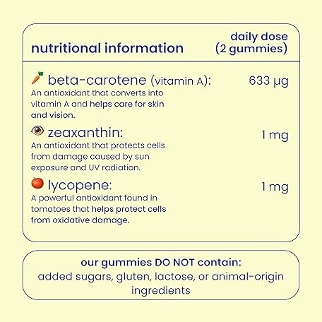 Thông tin sản phẩm Jelly Pills Beta Carotene Gummies with Lycopene, Copper and Vitamins A, C and E - No Sugar Added - 60 Strawberry Flavoured Vegan Gummies to Accelerate Your Skin's Tanning Process