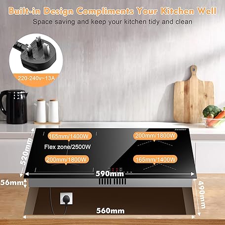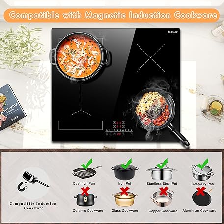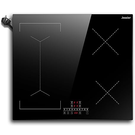 Thông tin sản phẩm Jessier Induction Hob 4 Burners, 2800W Plug in Electric Hobs with Flexible Zone for BBQ, 60cm Built-in Induction Cooker with 9 Power Levels Setting, Pause Function, Timer, Child-safety Lock, Black