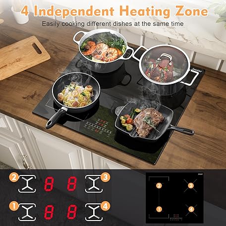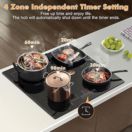 Sản phẩm Jessier Induction Hob 4 Burners, 2800W Plug in Electric Hobs with Flexible Zone for BBQ, 60cm Built-in Induction Cooker with 9 Power Levels Setting, Pause Function, Timer, Child-safety Lock, Black đang được bán với giá ưu đãi là $191.1969 tại nước Anh.