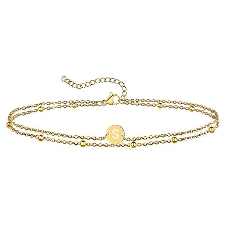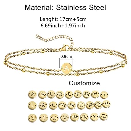 Sản phẩm Jewlure | Women's Yellow Gold Initial Bracelet, Exquisite 14K Gold Plated Layered Bracelet, 26 Letter Round Piece Hand Jewelry, Gift for Women đang được bán với giá ưu đãi là $10.0062 tại nước Anh.