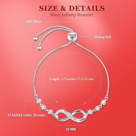 Sản phẩm J.Fée Infinity Bracelet Sterling Silver Bracelets for Womens Silver Jewellery,Adjustable Bracelets Friendship Bracelet Gift For Birthday Gifts for Women Mothers Day Gifts for Her đang được bán với giá ưu đãi là $24.8302 tại nước Anh.