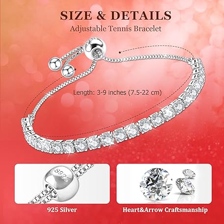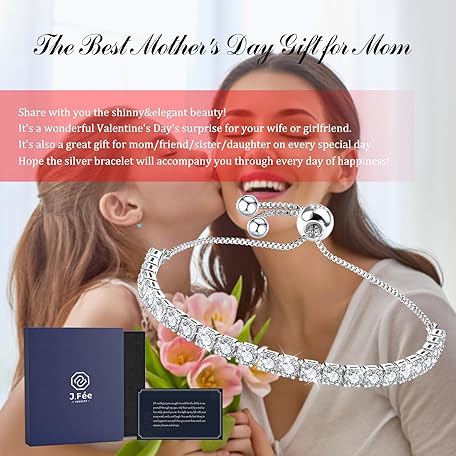 Thông tin sản phẩm J.Fée Silver Bracelets for Womens 925 Tennis Bracelet,Adjustable Bracelet With 4MM White,Green,Purple,Pink,Opal Crystal Ladies Jewellery Birthday Mothers Gift for Her with Box,Silver,Gold,Roldgold