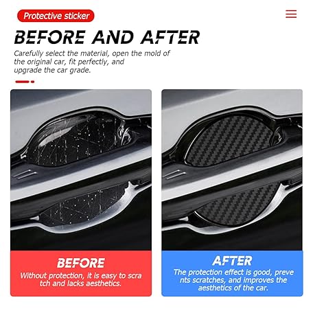 Thông tin sản phẩm JNNJ 4Pcs Car Door Handle Cup Protector, TPU Car Door Handle Scratch Protector Stickers, 3D Carbon Fiber Texture Auto Door Cup Protective Film, Vehicle Bowl Paint Cover for Most Models(9.5x10cm)