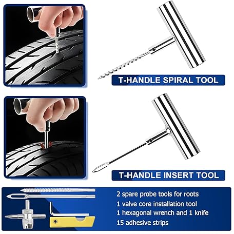 Thông tin sản phẩm JNNJ Tyre Repair Kit, Heavy Duty Tyre Repair Kit, Car Breakdown Set, Portable Tyre Puncture Repair Tools for Cars, Off-Road Vehicles, Motorcycles, Electric Vehicles, Bicycles and More(Blue)