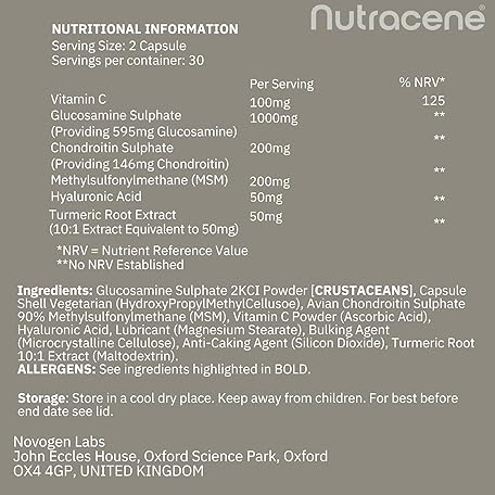 Thương hiệu NUTRACENE là cái tên nổi tiếng được rất nhiều khách hàng trên thế giới chọn lựa. Với kiểu dáng đẹp mắt, sang trọng, sản phẩm Joint Care Complex | Glucosamine, Chondroitin, MSM, Hyaluronic Acid & Turmeric | UK GMP Standards | Made in the UK | GMO Free | High Strength Formula for Men & Women | Relieves Joint Stiffness & Aches là sự lựa chọn hoàn hảo nếu bạn đang tìm mua một món cho riêng mình.
