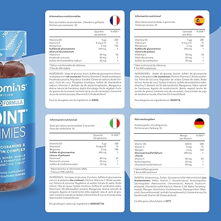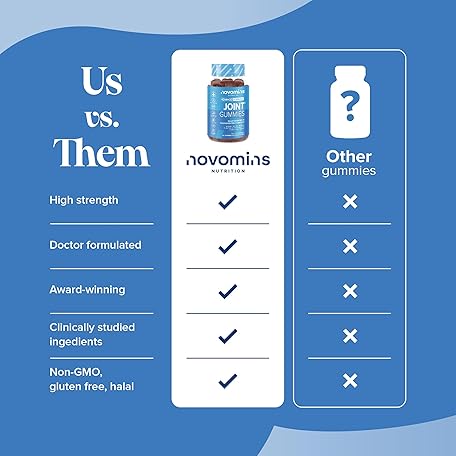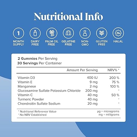 Thông tin sản phẩm Joint Gummies - Glucosamine and Chondroitin High Strength - Turmeric, Vitamin D, E & C, Glucosamine Sulphate & Chondroitin - Joint Care Supplements for Women and Men - 1 Month Supply - Novomins