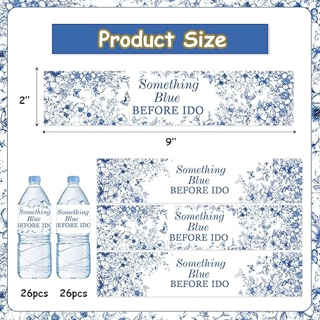 Thông tin sản phẩm Jollyboom 52pcs Something Blue Before I Do Bridal Shower Water Bottle Labels, Something Blue Bridal Shower Water Bottle Stickers Blue Floral Wraps Sticker Bachelorette Wedding Engagement Party Favors