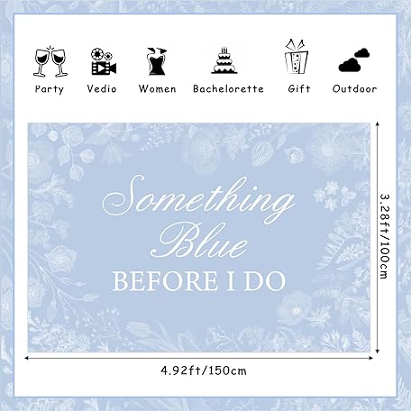 Thông tin sản phẩm Jollyboom Something Blue Before I Do Bridal Shower Backdrop, Something Blue Bridal Shower Decorations 5 x 3Ft Retro Floral Blue Photo Background for Bridal Shower Bachelorette Engagement Wedding Party