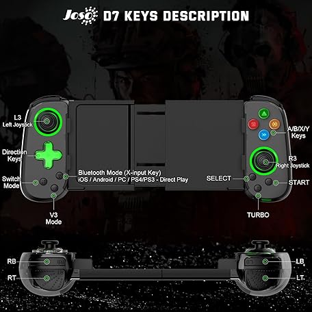 Thông tin sản phẩm Joso Mobile Game Controller for iPhone/Android/PC/Switch/PS4/PS3, Wireless Gamepad Joystick with Turbo/6-Axis Gyro/Vibration, Play Call of Duty, Roblox, Genshin Impact, Cloud Gaming, Remote Play