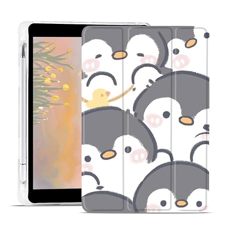 JOYLAND Cute Penguin Case for iPad Air 11 Inch M3 2025/M2 2024 with Pencil Holder, Clear TPU Foldable Smart Stand Back Cover, Auto Wake/Sleep Full Body Protection Shockproof Case