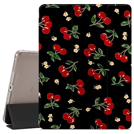 JOYLAND Fresh Cherry Flower Printed Case for iPad Air 3rd Gen 10.5" 2019/iPad Pro 10.5" 2017, Pencil Holder & Clear Transparent Back & Trifold Smart Pad Cover (Model Number:A1701 A1709 A1852)