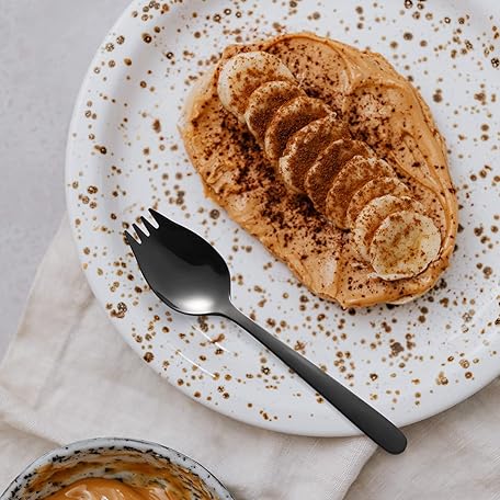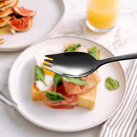 Sản phẩm JUCOXO Sporks 4 Pack Stainless Steel Sporks 5.9 inch Spork Spoon for Ice Cream Spoon Salad Forks, Fruit Appetizer Dessert Spoons (Black) đang được bán với giá ưu đãi là $11.663 tại nước Anh.