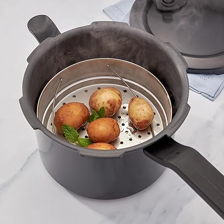 Thông tin sản phẩm Judge Pressure Cooker, Hard Anodised 5L, (24.5cm) With Steamer Basket, Great Healthier and Quicker Cookware, Suitable for All Hob Types Except Induction