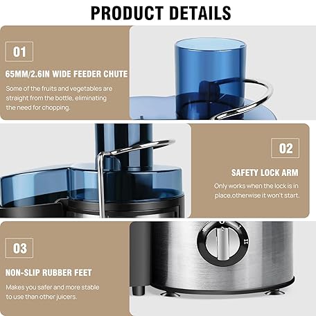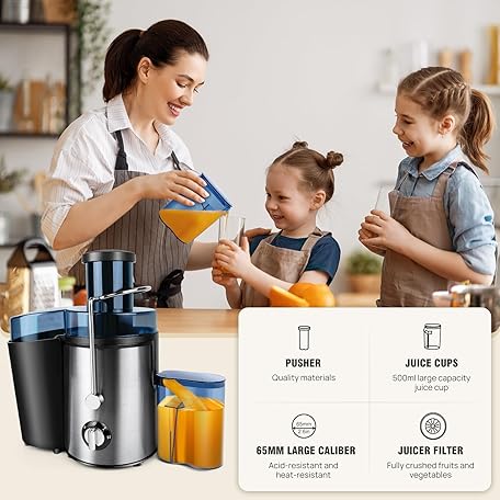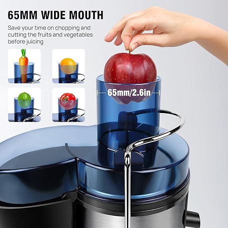 Thông tin sản phẩm Juicer, Centrifugal Juicer Machines Whole Fruit and Vegetable 400W, 65mm Wide Mouth Juicer Extractor with 2 Speeds, Easy Clean & Use, Compact Design & Anti-drip