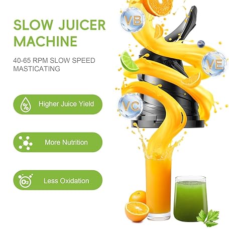 Thông tin sản phẩm Juicer Machines, Cold Press Juicer, Quiet Operation Easy Cleaning low Masticating Juicer Machine with 13CM Extra Large Feed Chute Fit Whole Fruits & Vegetables with Triple Filter