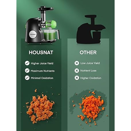 Thương hiệu HOUSNAT là cái tên nổi tiếng được rất nhiều khách hàng trên thế giới chọn lựa. Với kiểu dáng đẹp mắt, sang trọng, sản phẩm Juicer Machines, HOUSNAT Slow Masticating Juicers Whole Fruit and Vegetable, Professional Cold Press Juicer Extractor with Quiet Motor and Reverse Function Easy to Clean, Brush & Recipes Included là sự lựa chọn hoàn hảo nếu bạn đang tìm mua một món cho riêng mình.