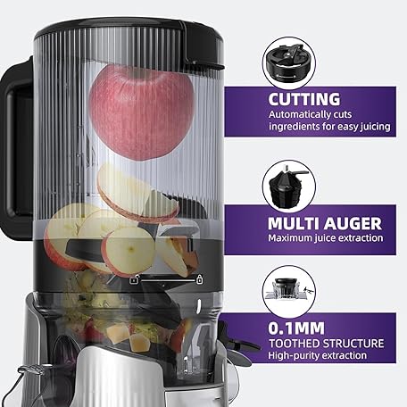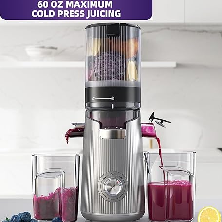 Thông tin sản phẩm Juicer Machines, Slow Masticating Juicer, Automatic Cold Press Juicer Machines with 5.3" Wider and Larger Feeding Chute (Capacity 1.8L), Vegetable Masticating Juicer Easy to Clean Juicers with 2 Cups