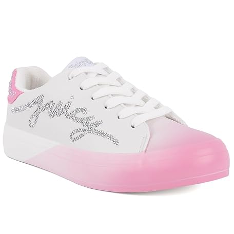 Juicy Couture Women's Platform Sneaker Glitter Script Logo – Casual Lace-Up Shoes for Everyday Style - Aurelie