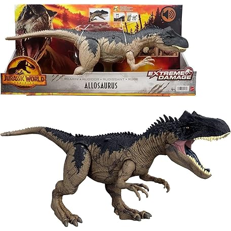 Thông tin sản phẩm Jurassic World Articulated Allosaurus Dinosaur Figure, Extreme Damage, 44.5 cm Long with Sounds, Multicoloured, Single (Mattel HFK06)