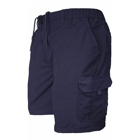 Thông tin sản phẩm JUST LOOK Mens Cargo Shorts Combat Multi Pocket Elasticated Waist Plain Lightweight Shorts (as8, Alpha, x_l, Regular, Short, Navy)
