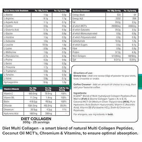 Thông tin sản phẩm K-GEN Multi Collagen Peptides Powder Hydrolyzed Grass Fed Bovine, Wild Caught Marine | Advanced Diet Collagen Types I, III, IV & V Hyaluronic Acid, MCT & Vitamin C