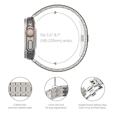 Thông tin sản phẩm KADES Compatible with Apple Watch Ultra 3/2/1 49mm, AP Metal Band for man for Series 11/10/9/8/7/6/5/4/SE/3/2/1 46mm/45mm/44mm/42mm with Stainless Steel Link Replacement Strap,Titanium