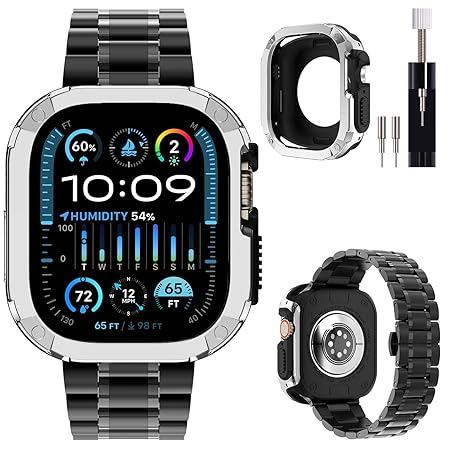 KADES Solid Stainless Steel Band Compatible with Apple Watch 49mm 45mm 44mm 42mm 41mm 40mm 38mm, Metal Strap for Apple Watch Ultra 2/1, Apple Watch Series 9/8/7/6/5/4/SE/SE2022/3/2/1 for Women and Men