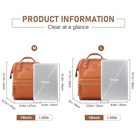 Thông tin sản phẩm Kah&Kee Leather Laptop Rucksack Backpack for Women,15-inch Laptop Bag,Ideal for Teachers, Work, School, College & Travel