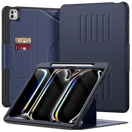 KAIJIAbox for iPad Pro 13 inch Case M5/M4 (2025/2024) with Pencil Holder, Shell Slim Protective Shockproof Cover with Magnetic Stand, Card Slots, Auto Sleep/Wake Case (Dark Blue)