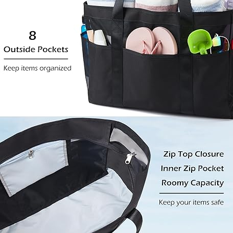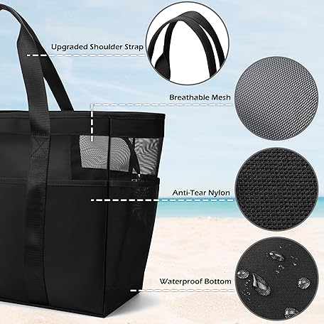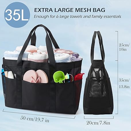 Thông tin sản phẩm KALIDI large beach bag with zip, Mesh Tote for Travel Daily Pool Gym Picnic, Lightweight Shopping Grocery Bag