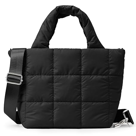 KALIDI Quilted Tote Bag Small Puffer Crossbody Bag for Women Lightweight Nylon Puffy Shoulder Handbag with Adjustable Strap