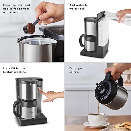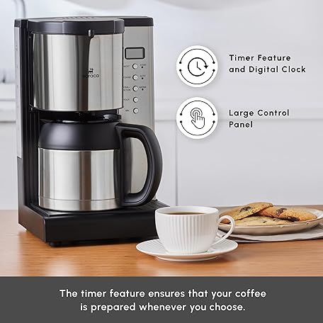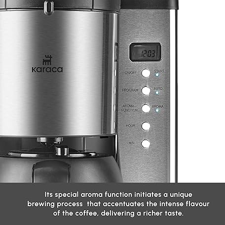Thông tin sản phẩm KARACA Coffee Art 1.35L Filter Coffee Machine with Richer Aroma Feature - 1000W INOX Silver and Black, Electric, 10 Cups Capacity & Alarm Clock