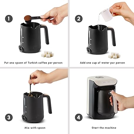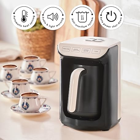 Thông tin sản phẩm KARACA Hatır Köz Turkish Coffee Machine for 5 People, 535W, Fully Automatic, Simple & Traditional Turkish Coffee Maker, Cream