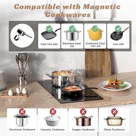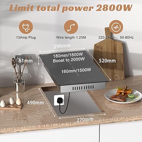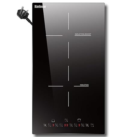 Thông tin sản phẩm Karinear Induction Hob 2 Ring– Plug-in Hob with Boost, 9 Power Levels, 99 Min Timer & Safety Lock for Iron Cookware (290 * 520 * 61mm)