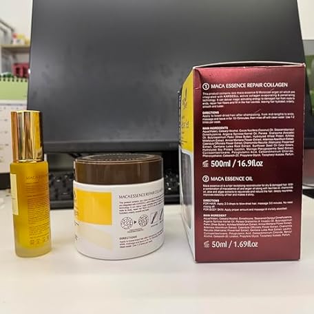 Thông tin sản phẩm Karseell Collagen Maca Essence Repair Set, Collagen Hair Mask 500ml & Maca Essence Hair Oil 50ml, Argan Oil Hair Treatment for Dry Damaged Hair All Hair Types