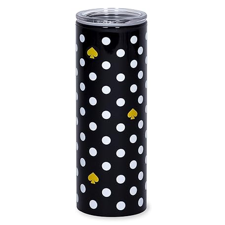 Kate Spade New York 16 Ounce Insulated Travel Mug, Black Double Wall Thermal Tumbler for Coffee/Tea, Polka Dots