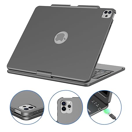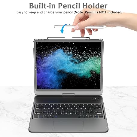Thông tin sản phẩm KBCASE Touch Keyboard Case for iPad Air 13-inch (M2) 2024/for iPad Pro 12.9 inch 3rd/4th Gen 2018/2020, 360°Rotatable Case with Touchpad & Pencil Holder for iPad Air 13 inch/Pro 12.9 (Titanium Gray)