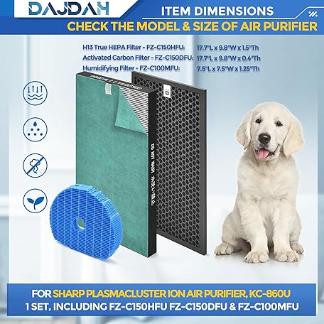 Thông tin sản phẩm KC-860U KC860U Replacement Filter Kit Compatible with Sharp KC-860U Replacement Filter for Sharp KC-860U Air Purifier with Humidifying Function, 1-Set Includes 1 FZ-C150HFU, 1 FZ-C150DFU, 1 FZ-C100MFU