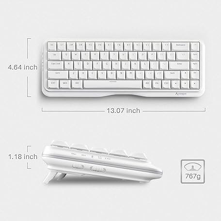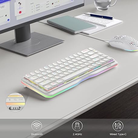 Thông tin sản phẩm KEMOVE K68 65% TKL Wireless Mechanical Gaming Keyboard, 2.4GHz/Bluetooth 5.0/Type-C Cable with Hotswap Cherry MX Red Switch, RGB Light Effect, w/Low Profile PBT Keycap QWERTY Layout, White