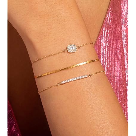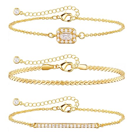 Sản phẩm Kenivira Gold Bracelet Set for Women 18K Gold Plated Serpentine/Bar/Cubic Zirconia/Rope/Curb/Paperclip/Beaded/Figaro/Satellite/Herringbone Chain Adjustable Bracelets for Women Girls đang được bán với giá ưu đãi là $8.7418 tại nước Anh.